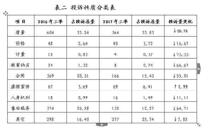 投诉性质分析变化比率。(见表二)